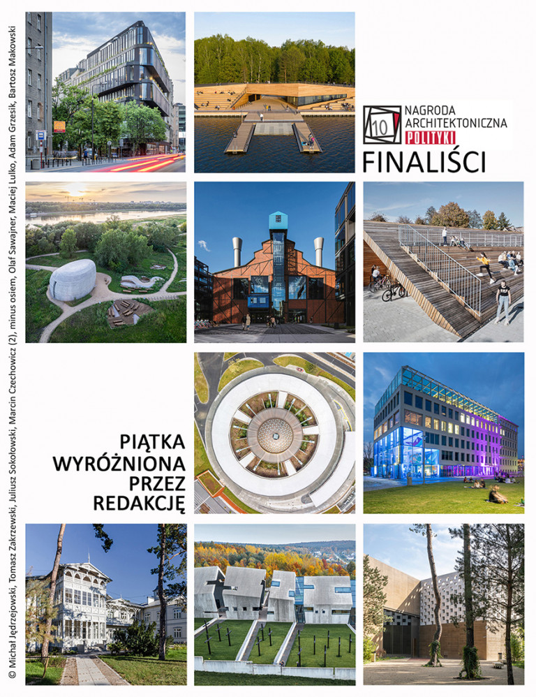 O nagrodę główną walczą: Centrum Aktywności Lokalnej w Rybniku, Przystań kajakarska MOSM w Tychach, Hotel NOBU w Warszawie, Pawilon edukacyjny Kamień w Warszawie oraz Zespół biurowo-usługowo-mieszkalny Elektrownia Powiśle w Warszawie.